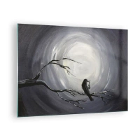 Schilderen op glas - Een raaf zittend op een tak tegen de achtergrond van een volle maan - 70x50cm - De sleutel tot het mysterie van de nacht - Moderne wanddecoratie voor woonkamer en slaapkamer ARTTOR