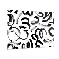 Schilderen op glas - Zwart-witte abstracte penseelstreken - 70x50cm - Zwart op wit - Moderne wanddecoratie voor woonkamer en slaapkamer ARTTOR