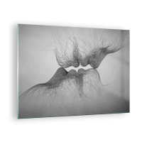 Schilderen op glas - Abstracte kus in zwart-wit - 70x50cm - Kus van de wind - Moderne wanddecoratie voor woonkamer en slaapkamer ARTTOR