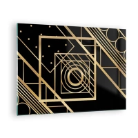 Schilderen op glas - Gouden geometrische patronen op een zwarte achtergrond - 70x50cm - Gouden geometrie - Moderne wanddecoratie voor woonkamer en slaapkamer ARTTOR