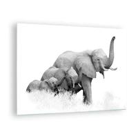 Schilderen op glas - Zwart-witte olifantenfamilie in de natuur - 70x50cm - Een twee drie - Moderne wanddecoratie voor woonkamer en slaapkamer ARTTOR