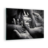 Schilderen op glas - Symbolische zwart-witte handdruk van verschillende generaties - 70x50cm - Om mens te zijn - Moderne wanddecoratie voor woonkamer en slaapkamer ARTTOR