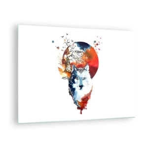 Schilderen op glas - Illustratie van een wolf met een volle maan op de achtergrond - 70x50cm - Neus aan neus met de nacht - Moderne wanddecoratie voor woonkamer en slaapkamer ARTTOR