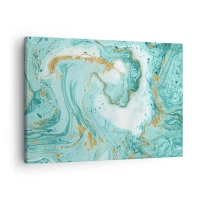 Schilderen op canvas - Turquoise marmer met gouden accenten in een abstracte compositie - 70x50cm - Onder de grote golf van het Edo-tijdperk - Moderne wanddecoratie voor woonkamer en slaapkamer ARTTOR