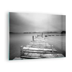 Schilderen op glas - Houten steiger boven een kalm meer in zwart-wit - 70x50cm - Achter bergen en zeeën - Moderne wanddecoratie voor woonkamer en slaapkamer ARTTOR