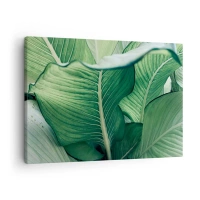 Schilderen op canvas - Groene bladeren met expressieve details en structuur - 70x50cm - Intens groen leven - Moderne wanddecoratie voor woonkamer en slaapkamer ARTTOR