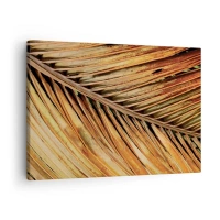Schilderen op canvas - Close-up van een droog palmblad in warme tinten - 70x50cm - Kokos goud - Moderne wanddecoratie voor woonkamer en slaapkamer ARTTOR