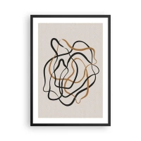 Poster in een zwarte lijst - Abstracte verwarde lijnen in zwart en goud op beige - 50x70cm - Alles ging mis - Moderne wanddecoratie voor woonkamer en slaapkamer ARTTOR