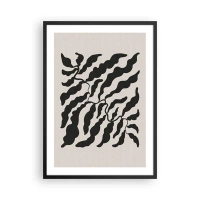 Poster in een zwarte lijst - Moderne abstractie in zwart-wit met dynamische lijnen - 50x70cm - Zwart-wit organische abstractie - Moderne wanddecoratie voor woonkamer en slaapkamer ARTTOR