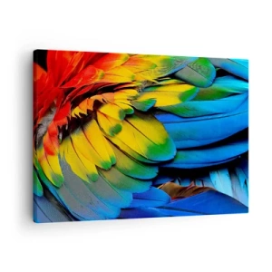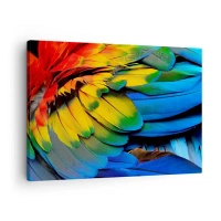 Schilderen op canvas - Een close-up van de kleurrijke veren van een papegaai - 70x50cm - Paradijsvogel - Moderne wanddecoratie voor woonkamer en slaapkamer ARTTOR