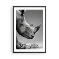 Poster in een zwarte lijst - Zwart-wit close-up van de kop van een neushoorn - 50x70cm - Onstuitbare kracht - Moderne wanddecoratie voor woonkamer en slaapkamer ARTTOR