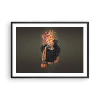Poster in een zwarte lijst - Vrouw - bloem - 70x50 cm