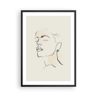 Poster in een zwarte lijst - Minimalistisch portret van een vrouw in lijnkunststijl - 50x70cm - Een trotse blik - Moderne wanddecoratie voor woonkamer en slaapkamer ARTTOR