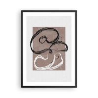 Poster in een zwarte lijst - Abstracte golvende lijnen in natuurlijke tinten - 50x70cm - Een vrolijke dans van abstractie - Moderne wanddecoratie voor woonkamer en slaapkamer ARTTOR