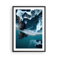 Poster in een zwarte lijst - Uitzicht op de oceaan golven die tegen de rotsen beuken - 50x70cm - In golven gewikkeld - Moderne wanddecoratie voor woonkamer en slaapkamer ARTTOR
