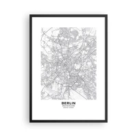 Poster in een zwarte lijst - Een zwart-witkaart van Berlijn met nauwkeurig aangegeven straten. - 50x70cm - Berlijnse bloem - Moderne wanddecoratie voor woonkamer en slaapkamer ARTTOR