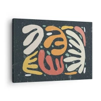 Schilderen op canvas - Precolumbiaanse patronen in pastelkleuren op een donkere achtergrond - 70x50cm - Abstractie in de precolumbiaanse geest - Moderne wanddecoratie voor woonkamer en slaapkamer ARTTOR