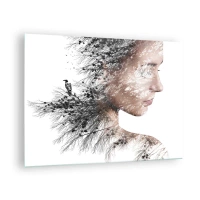 Schilderen op glas - Portret van een vrouw met takken op de achtergrond - 70x50cm - De geest van het bos - Moderne wanddecoratie voor woonkamer en slaapkamer ARTTOR