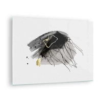 Schilderen op glas - Abstracte compositie van zwart en goud op een witte achtergrond - 70x50cm - In zwart en goud - Moderne wanddecoratie voor woonkamer en slaapkamer ARTTOR