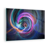 Schilderen op glas - Een abstracte spiraal in felle kleuren op een donkere achtergrond. - 70x50cm - Waar breng je me heen? - Moderne wanddecoratie voor woonkamer en slaapkamer ARTTOR