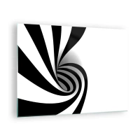 Schilderen op glas - Abstracte spiraal in zwart-wit met een dynamische vorm - 70x50cm - En toch draait het - Moderne wanddecoratie voor woonkamer en slaapkamer ARTTOR