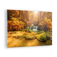 Schilderen op glas - Boscascade in goud - 70x50cm - Boscascade in goud - Moderne wanddecoratie voor woonkamer en slaapkamer ARTTOR