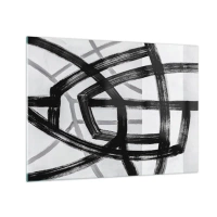 Schilderen op glas - Zwarte en grijze penseelstreken creëren een dynamisch netwerk van lijnen. - 70x50cm - Diepte opbouwen - Moderne wanddecoratie voor woonkamer en slaapkamer ARTTOR