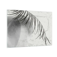 Schilderen op glas - Zwart-witte schaduwafbeelding van palmbladeren - 70x50cm - Het subtiele exotisme van de natuur - Moderne wanddecoratie voor woonkamer en slaapkamer ARTTOR