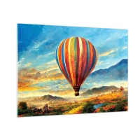 Schilderen op glas - Een kleurrijke ballon die over een berglandschap zweeft - 70x50cm - In stilte zie je meer - Moderne wanddecoratie voor woonkamer en slaapkamer ARTTOR