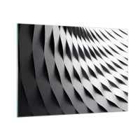 Schilderen op glas - Een abstracte zwart-witte structuur die lijkt op golvende vormen. - 70x50cm - Aan de oppervlakte van de golven - Moderne wanddecoratie voor woonkamer en slaapkamer ARTTOR