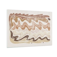 Schilderen op glas - Beige en bruine golven in een abstracte compositie - 70x50cm - Goede energie – goede emoties - Moderne wanddecoratie voor woonkamer en slaapkamer ARTTOR
