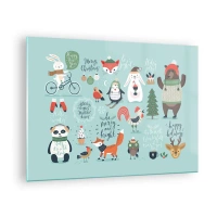 Schilderen op glas - Kerstdierenillustraties op een pastelachtergrond - 70x50cm - Moge het altijd kerst zijn! - Moderne wanddecoratie voor woonkamer en slaapkamer ARTTOR