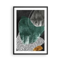 Poster in een zwarte lijst - Abstracte compositie in groen en goud - 50x70cm - Kleurrijke abstractie met bladgoud - Moderne wanddecoratie voor woonkamer en slaapkamer ARTTOR