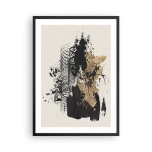 Poster in een zwarte lijst - Abstracte compositie in tinten zwart en goud - 50x70cm - Compositie met passie - Moderne wanddecoratie voor woonkamer en slaapkamer ARTTOR