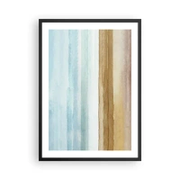 Poster in een zwarte lijst - Een abstract tafereel van een golf die op de kust beukt, in de kleuren turquoise en zand. - 50x70cm - De terugkerende golf - Moderne wanddecoratie voor woonkamer en slaapkamer ARTTOR