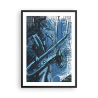 Poster in een zwarte lijst - Artistieke schets van een muzikant die saxofoon speelt - 50x70cm - Stedelijke Rapsodie - Moderne wanddecoratie voor woonkamer en slaapkamer ARTTOR