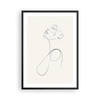 Poster in een zwarte lijst - Een delicaat vrouwelijk silhouet in een doorlopende lijn - 50x70cm - Als een gevoelig instrument - Moderne wanddecoratie voor woonkamer en slaapkamer ARTTOR