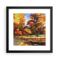 Poster in een zwarte lijst - Landschap in goud en brons - 30x30 cm