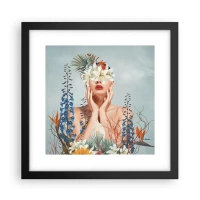 Poster in een zwarte lijst - Vrouw - bloem - 30x30 cm