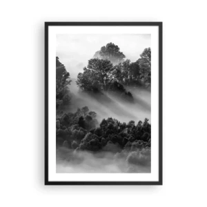 Poster in een zwarte lijst - Mistig bos in tinten zwart en wit - 50x70cm - Opstaand