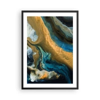 Poster in een zwarte lijst - Een abstracte compositie in tinten goud en blauw. - 50x70cm - Blauw - geel - wederzijdse invloeden - Moderne wanddecoratie voor woonkamer en slaapkamer ARTTOR