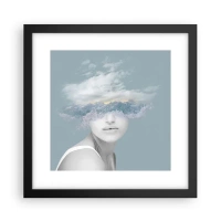 Poster in een zwarte lijst - Met hoofd in de wolken - 30x30 cm