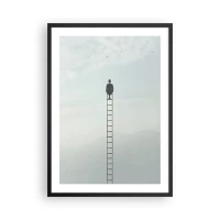 Poster in een zwarte lijst - Man op een ladder die naar de lucht kijkt - 50x70cm - Stap verder op! - Moderne wanddecoratie voor woonkamer en slaapkamer ARTTOR