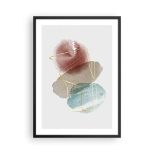 Poster in een zwarte lijst - Abstracte compositie in pastelkleuren - 50x70cm - Koralen van de ruimte - Moderne wanddecoratie voor woonkamer en slaapkamer ARTTOR