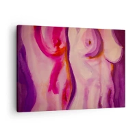 Schilderen op canvas - Een abstracte interpretatie van het vrouwelijk silhouet in roze en paars. - 70x50cm - Ode aan vrouwelijkheid - Moderne wanddecoratie voor woonkamer en slaapkamer ARTTOR