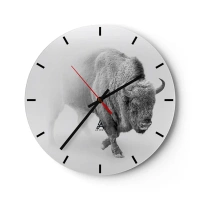 Wandklok - Klok - Zwart-witillustratie van een bizon tegen een witte wijzerplaat - 30x30cm - Koning van de prairie - Moderne wanddecoratie voor woonkamer, keuken en slaapkamer ARTTOR