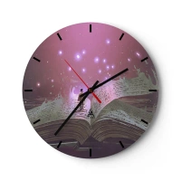 Wandklok - Klok - Een open boek met een magische roze gloed - 30x30cm - Uitnodiging voor een andere wereld - lees! - Moderne wanddecoratie voor woonkamer, keuken en slaapkamer ARTTOR