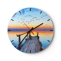 Wandklok - Klok - Een pier op het meer in de stralen van de ondergaande zon - 30x30cm - Het is tijd om terug te gaan... - Moderne wanddecoratie voor woonkamer, keuken en slaapkamer ARTTOR