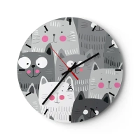 Wandklok - Klok - Grijze en witte katten in een illustratieve stijl - 30x30cm - De wereld van de kat - Moderne wanddecoratie voor woonkamer, keuken en slaapkamer ARTTOR