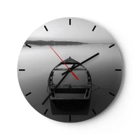 Wandklok - Klok - Een eenzame boot op een kalm meer, in zwart-wit. - 30x30cm - Verlangen en melancholie - Moderne wanddecoratie voor woonkamer, keuken en slaapkamer ARTTOR